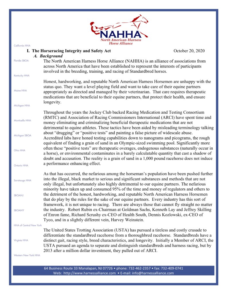 I. The Horseracing Integrity and Safety Act October 20, 2020